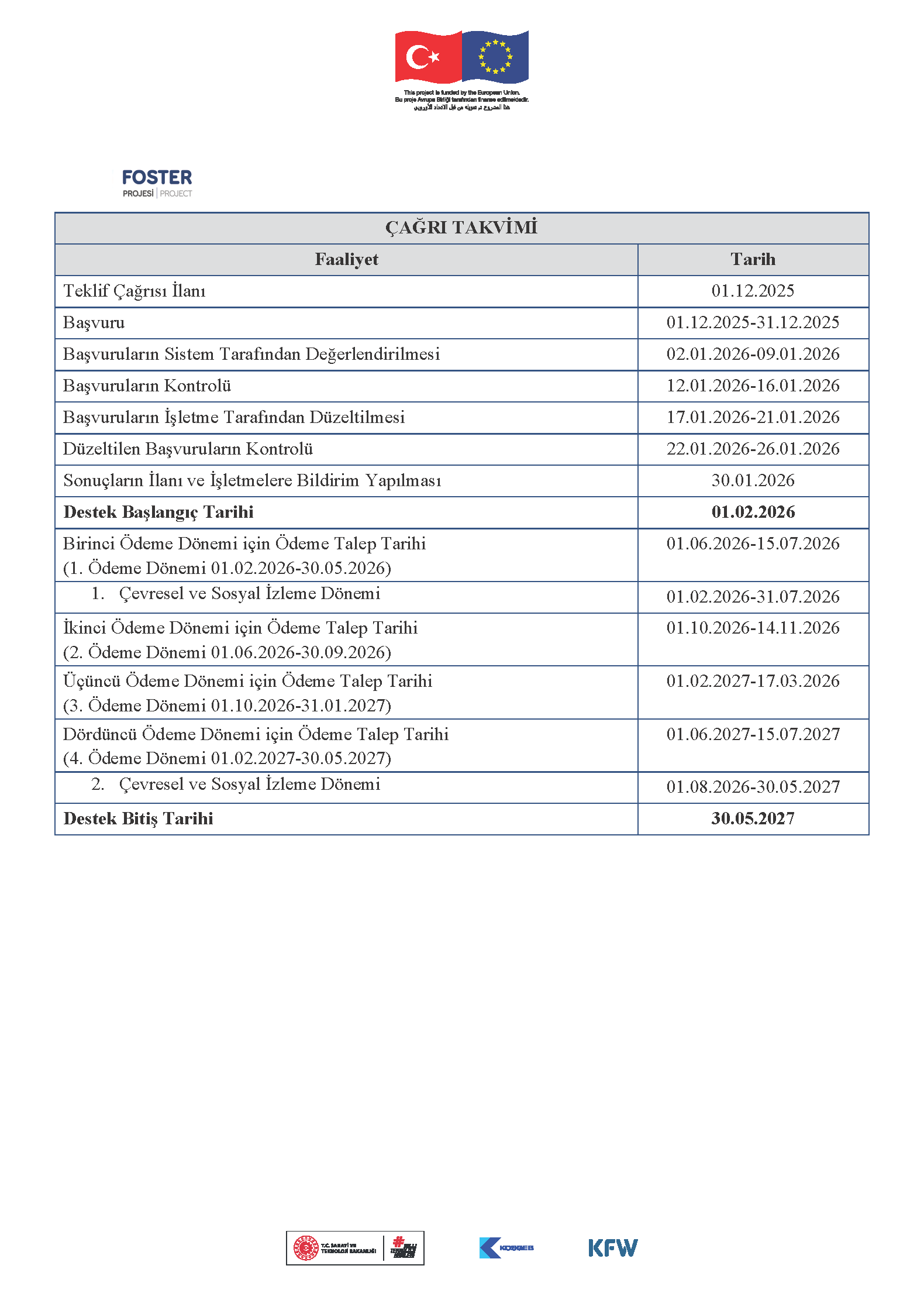 Destek Başvuru Tarihleri: 01.12.2025 - 31.12.2025