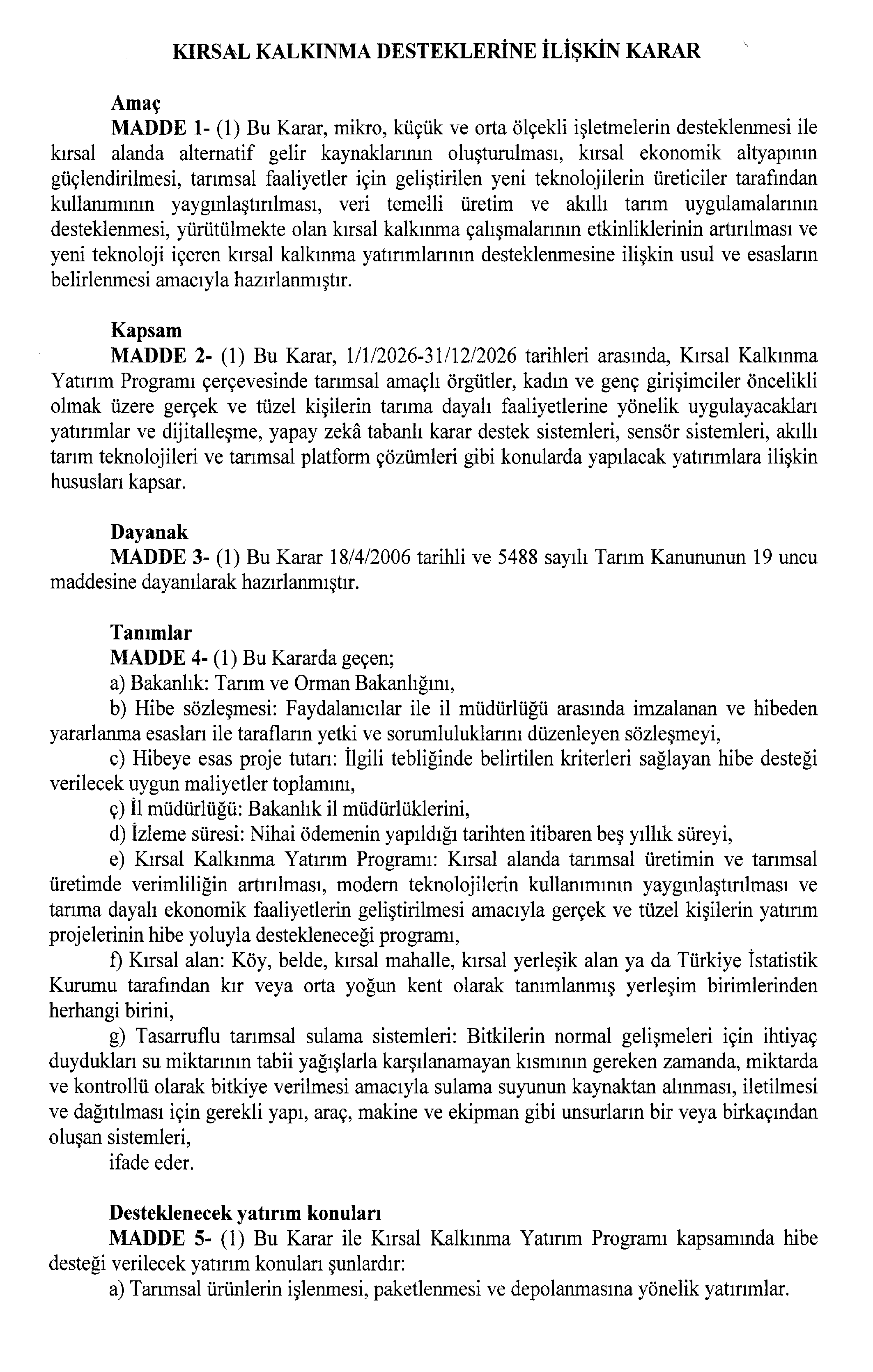 Kaynak: https://www.tarimorman.gov.tr/Haber/6915/Kirsal-Kalkinma-Desteklerinde-Yeni-Donem