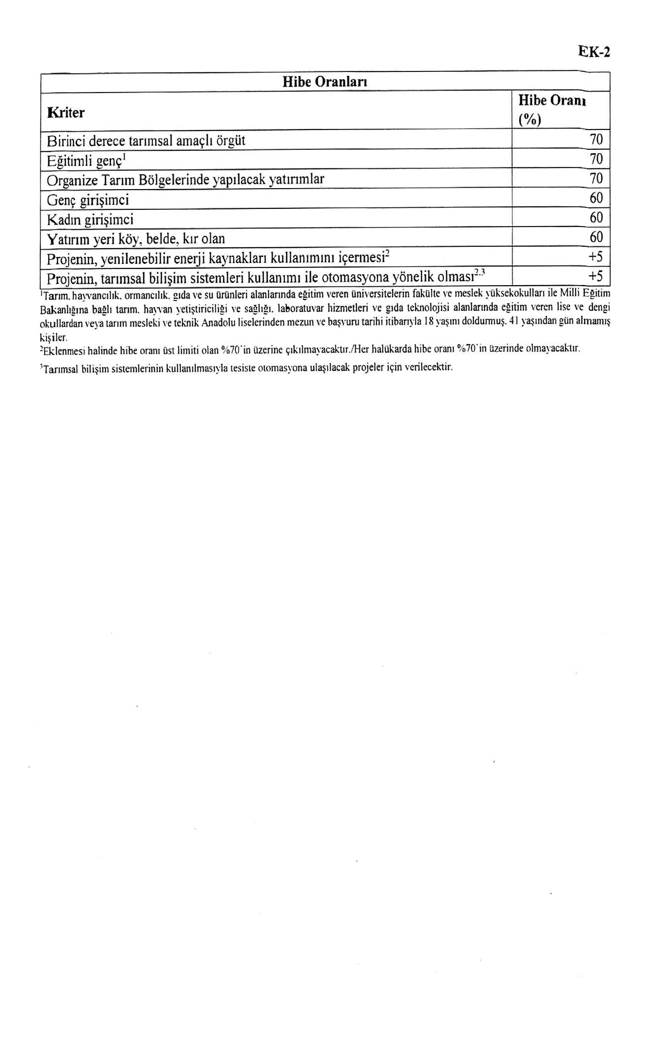 HİBE ORANLARI; %50 - %70 Aralığında değişmektedir.