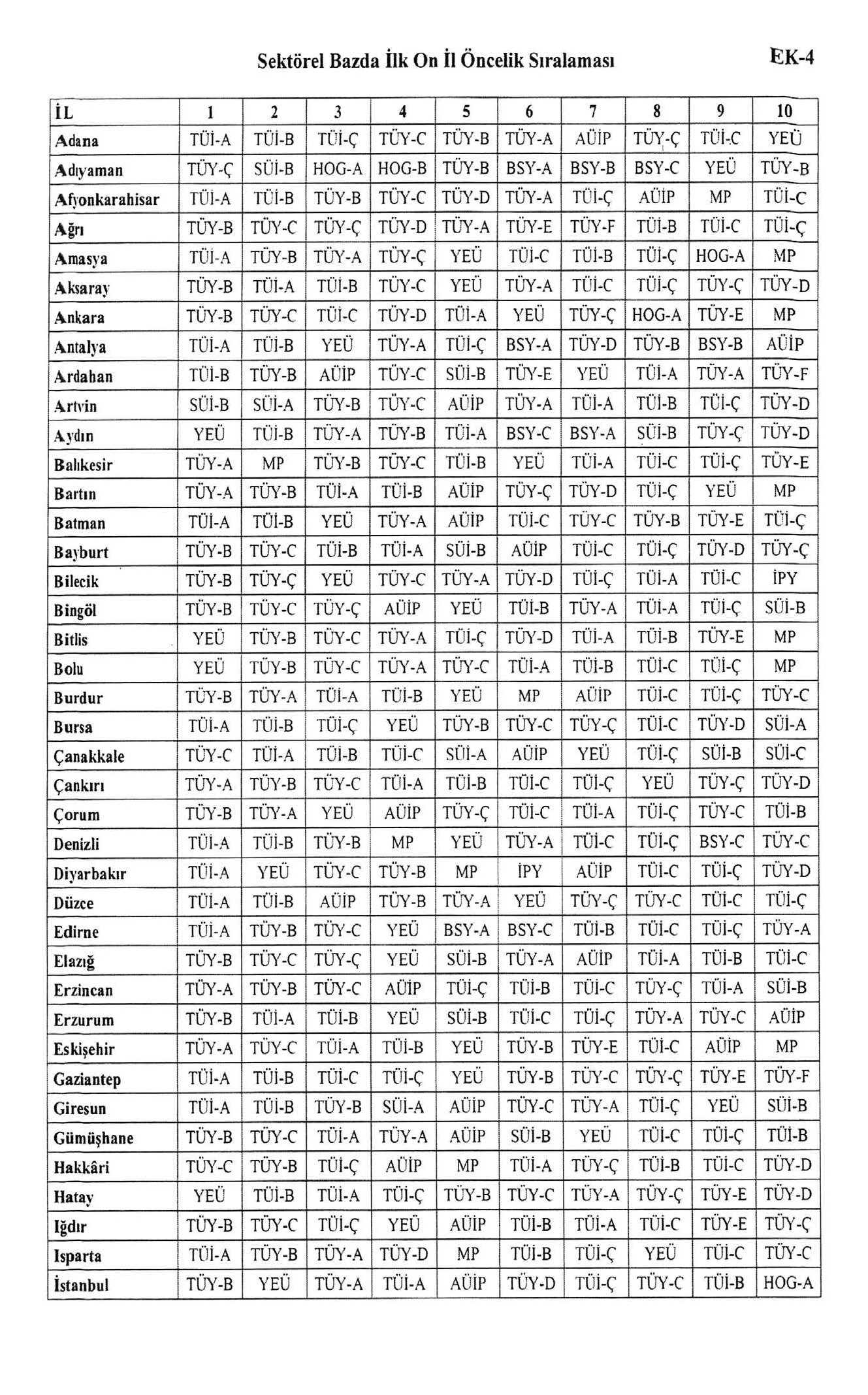 Sektörel Bazlı ilk 3 te yer alırsa 4 Puan