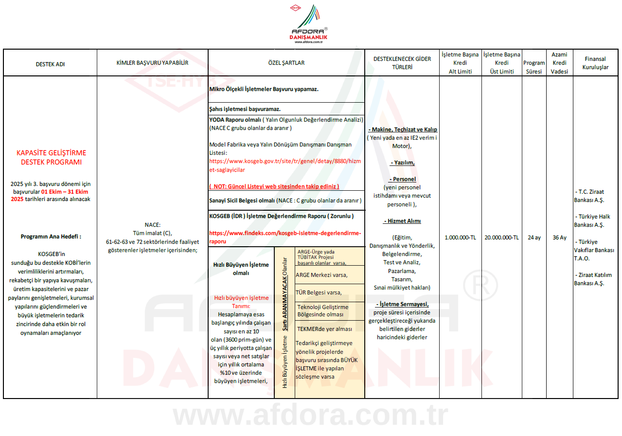 KOBİ’lerimizin üretim kapasitelerini ve rekabet güçlerini artırmak için Kapasite Geliştirme Destek Programı’nın 3. başvuru dönemi başladı.