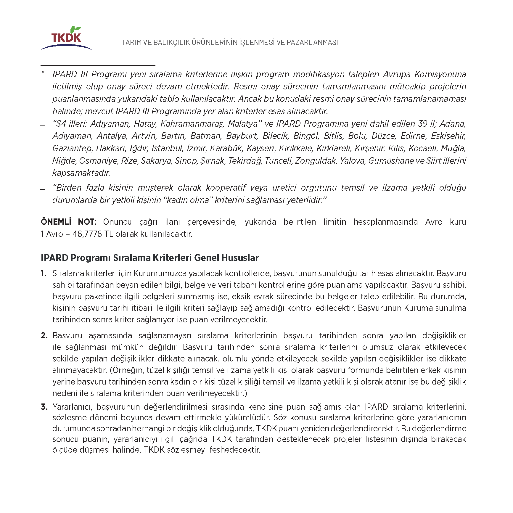 TKDK IPARD III Programı 10. Başvuru Çağrı ilanı Yayımlandı!